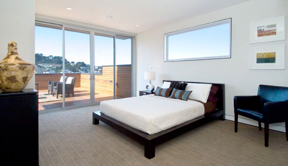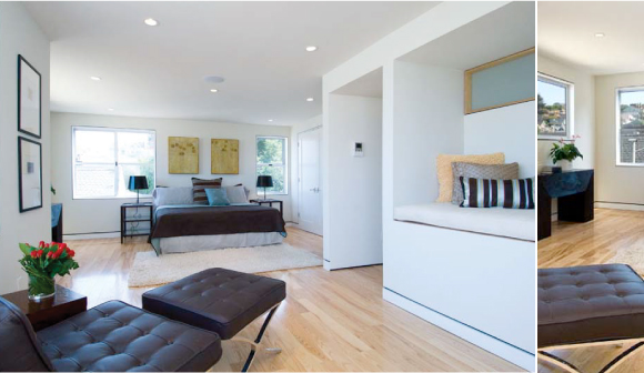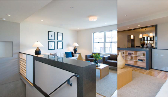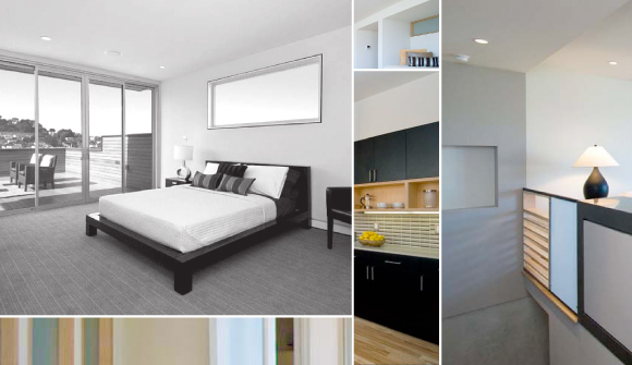 This single-family residence is a developer-driven urban infill project located in the Castro district. The unusual narrowness and steep slope of the lot created unique challenges which informed the design. Terracing the open floor plans with access to a private rear garden on the south side and expansive windows that capture panoramic views on the north side maximized the density while minimizing negative constraints. A strong palette of materials, extensive built-in cabinetry and sculptural elements were used strategically throughout to grant heft and texture.