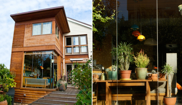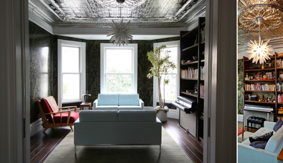 The entry foyer and adjacent sitting parlor of this single-family residence respect its traditional Victorian nature while initiating the transition to a careful integration of modern design and clever detailing. The rear of the home resolves in a modern glass tower that overlooks a lush garden. Transformed by a complete interior renovation, rear yard addition and restoration of the exterior facade to its original period detailing, the house is enhanced by the interaction of warm and playful materials, an intimate scale and thoughtfully proportioned spaces—all of which create a powerful feeling of both privacy and openness.